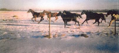 Die Perde haben täglich Koppelgang, auch im Winter. Nur über Nacht und bei sehr schlechtem Wetter werden sie aufgestallt.
